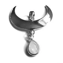 Sterling Silver Rainbow Moonstone Priestess Moon Pendant