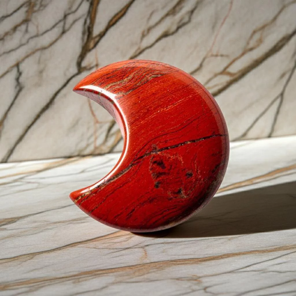 Our hand crafted Red Jasper Crystal Crescent Moon is a lovely crystal to use to work with Moon energy and to connect to the Moon.