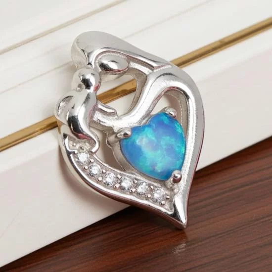 • Charming symbol of a Mother's love - a 925 sterling silver heart-shaped pendant with a Mother holding her child.