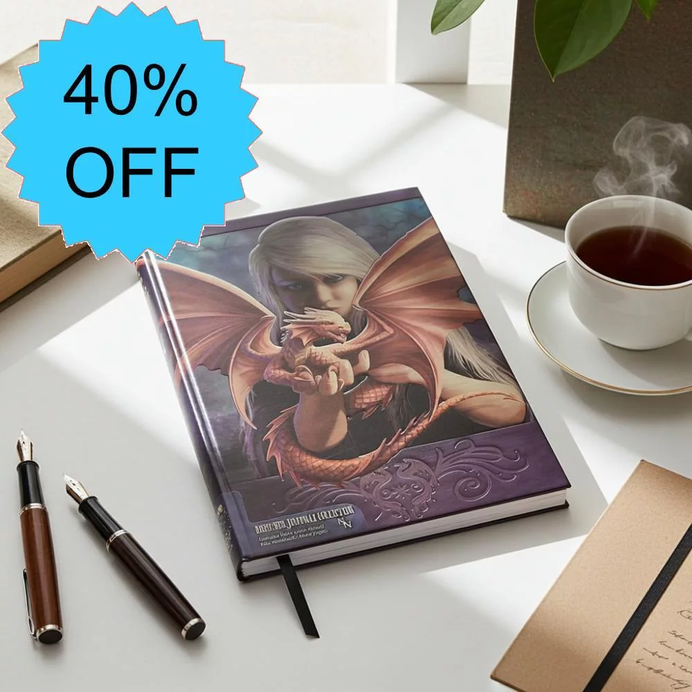 Attractive hardback notebook featuring renowned gothic and fantasy artist Anne Stokes' "Dragon Kin" artwork on the front and back, which shows a fair-haired girl holding her baby dragon.
