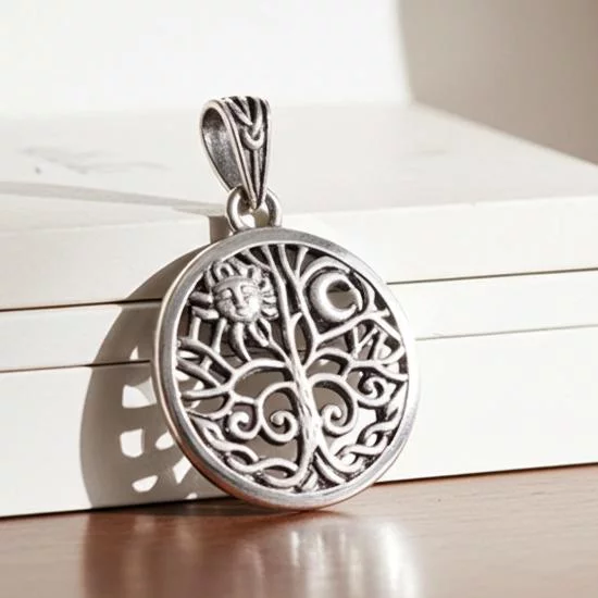 Highly detailed 925 sterling silver Solstice Tree of Life pendant by Peter Stone™.