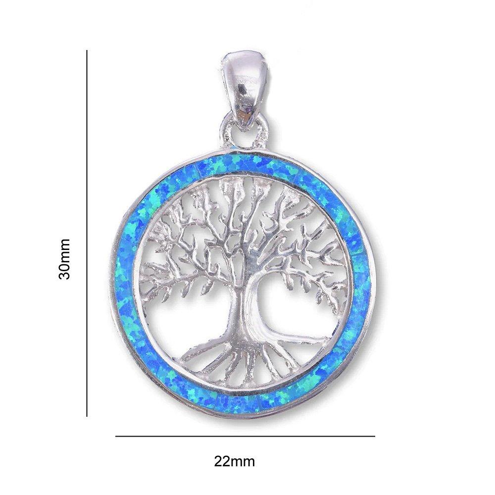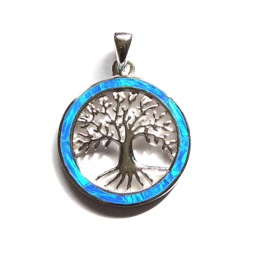 925 sterling silver Tree of Life pendant in a shimmering Blue Opal surround.
