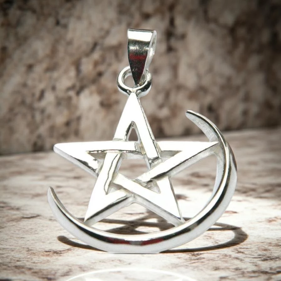 Sterling Silver Maiden Moon Pentagram Pendant