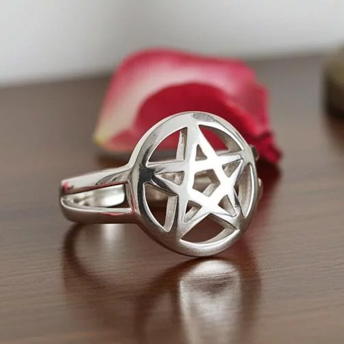 Adjustable 925 sterling silver Pentacle toe ring with open shoulders