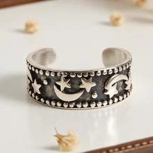 Sterling Silver Moon & Stars Toe/Midi Ring