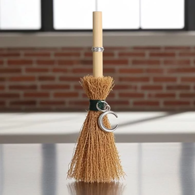 Attract luck and positive energy with our Mini Magick Broomstick with silvertone waning Crescent Moon charm. Keep it with you for magick rituals, or bring it with you every day as a lucky charm to sweep away negativity.