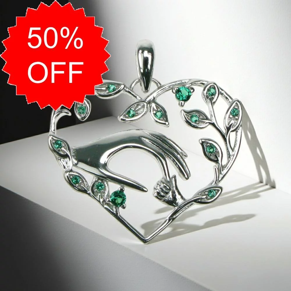 Sterling Silver Caring Hands Heart Pendant with Emerald CZ [Sale]